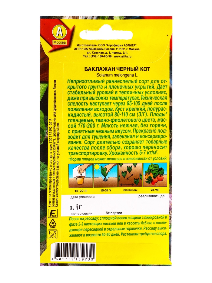 Семена Баклажан Черный кот, Ц/П,0,1 г