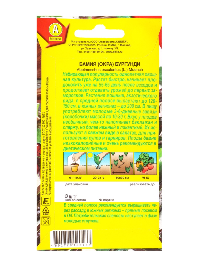 Семена Бамия Бургунди, Ц/П,8 шт.