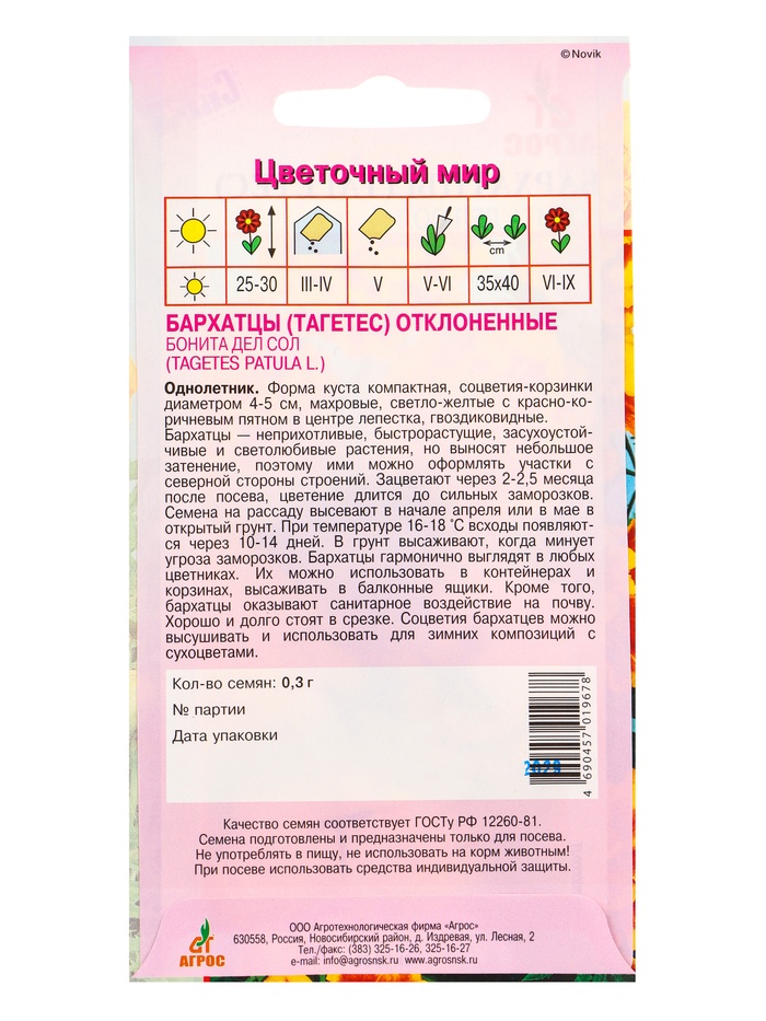 Семена Бархатцы Бонита Дел Сол 0,3 г
