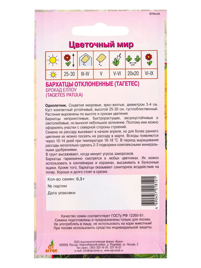 Семена Бархатцы Брокад Еллоу 0,3 г