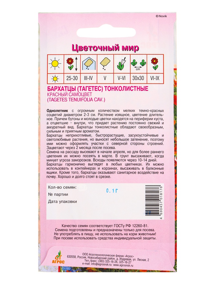 Семена Бархатцы Красный самоцвет тонколистный 0,1 г