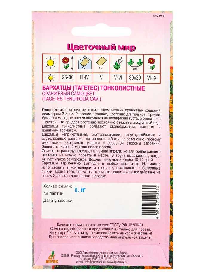 Семена Бархатцы Оранжевый самоцвет тонколистный 0,1 г
