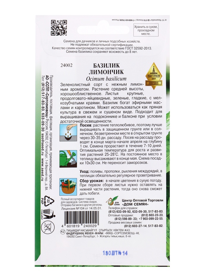 | Материалы из которых произведен товарСемена | Минимальная партия3 | НовинкаДа |