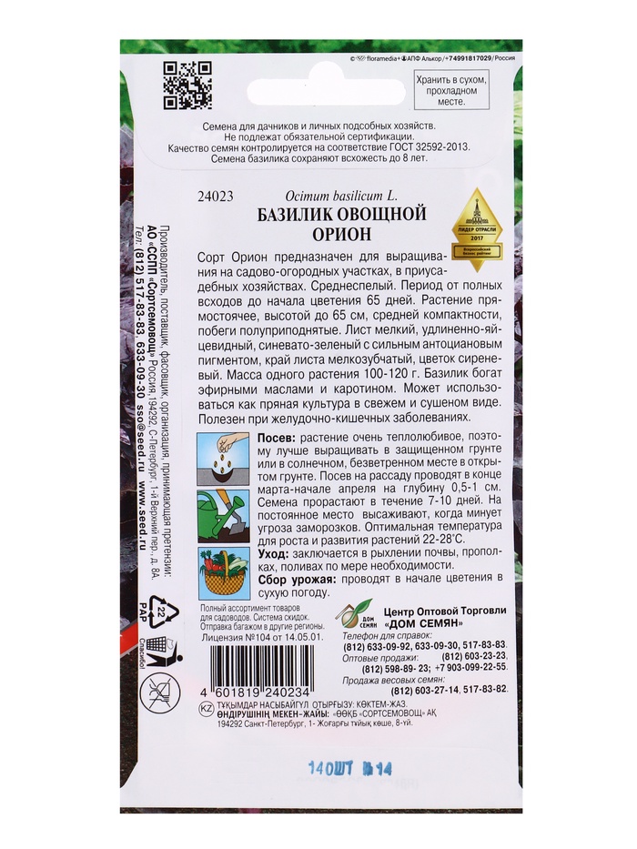 Семена Базилик Орион 140 шт