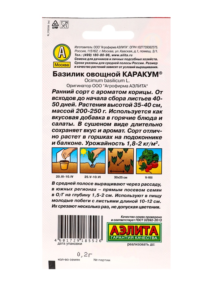 Семена Базилик овощной Каракум , Ц/П,0,2 г