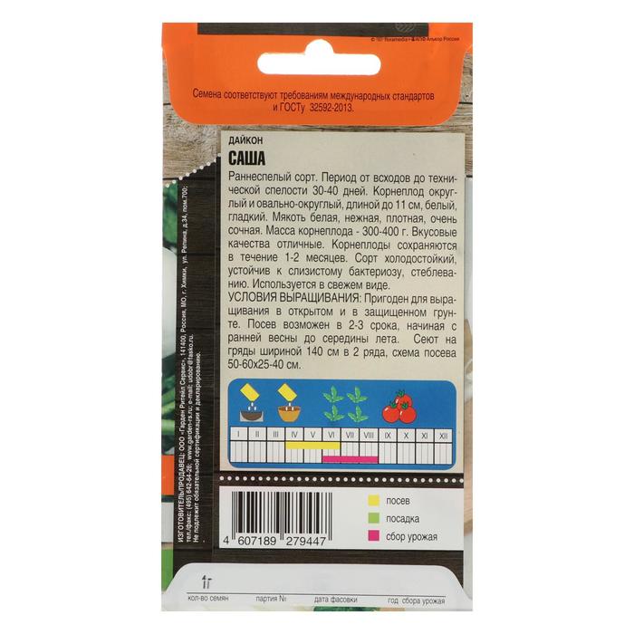 "Семена Дайкон ""Саша"" ранний - это высококачественное семенное производство, которое предлагает ранний сорт дайкона с уникальными качествами.