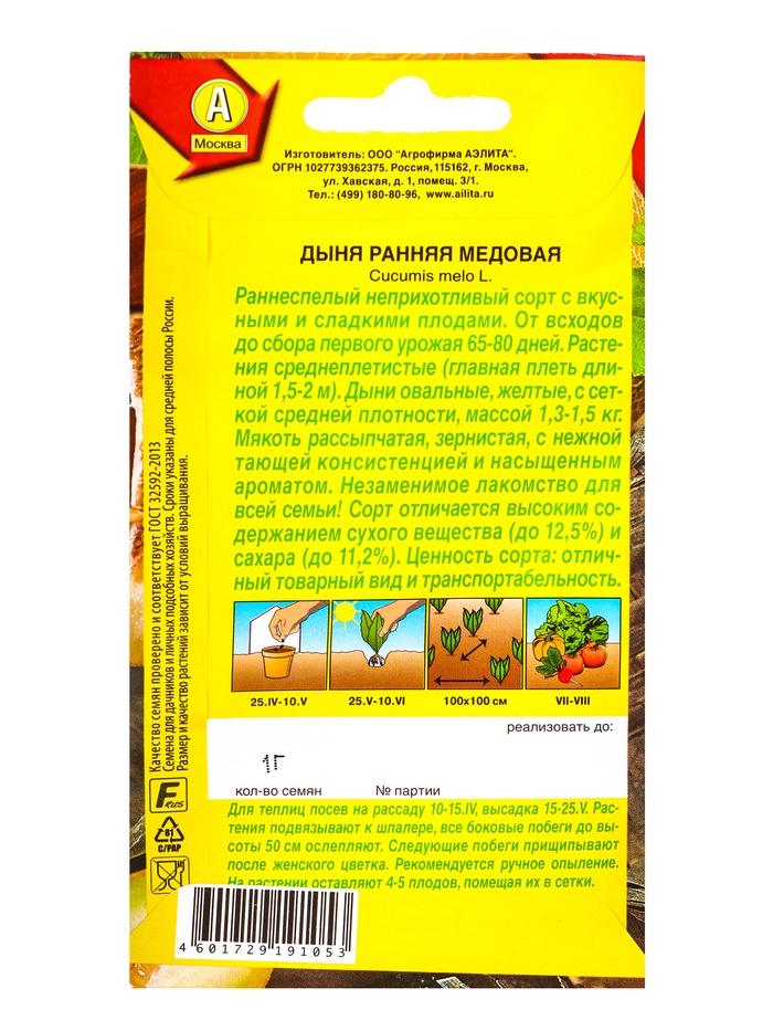 Семена Дыня Ранняя медовая, Ц/П,1 г