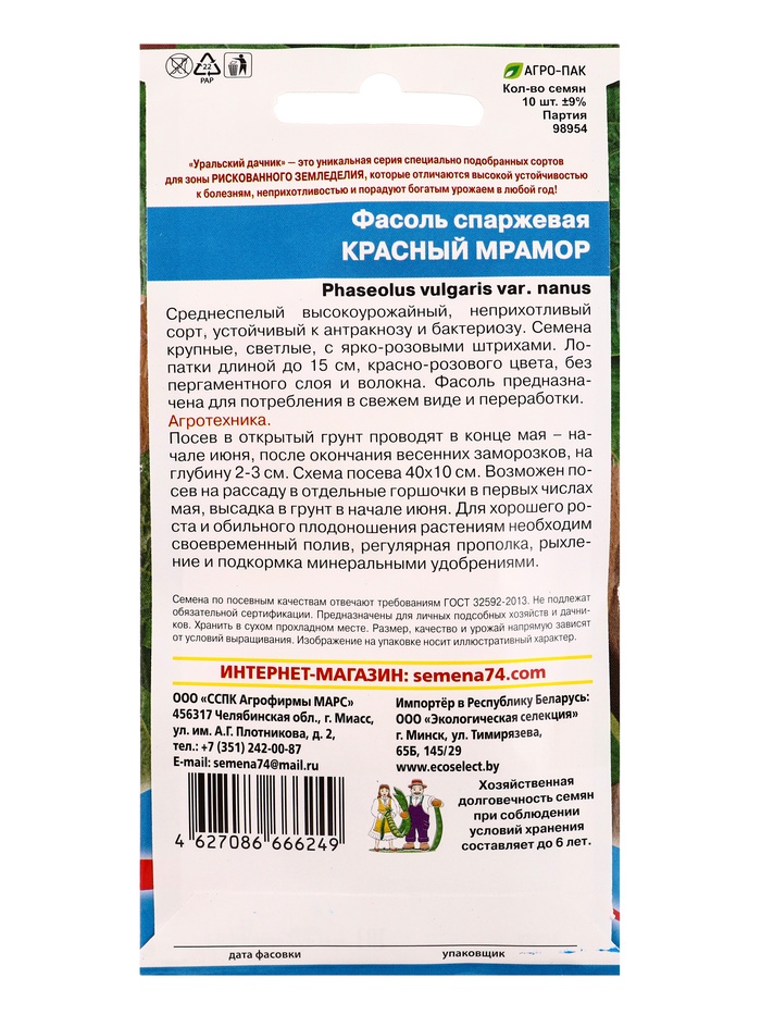 Семена Фасоль Красный мрамор - спаржевая (УД) Е/П , Е/П, 10 шт.