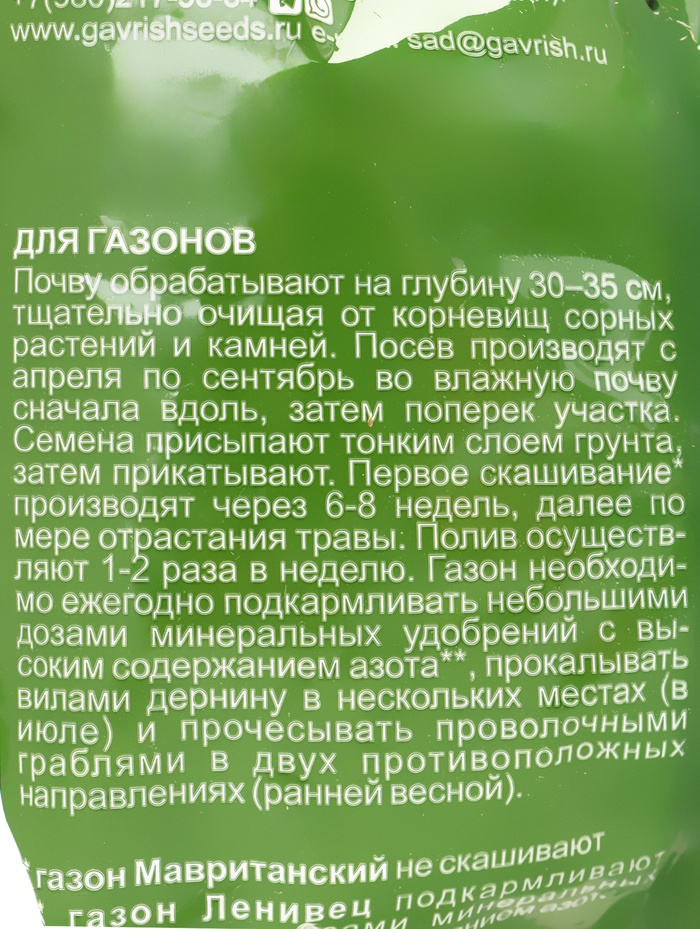 | Состав газонных трав | Мятлик луговой; Овсяница красная; Райграс пастбищный |