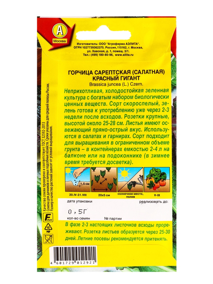 Семена Горчица салатная Красный гигант, Ц/П,0,5 г