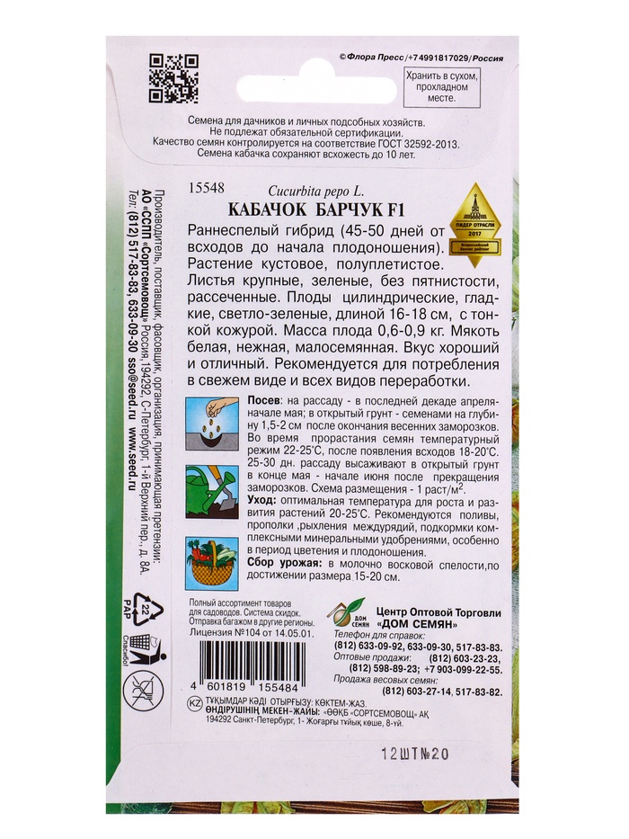 | Материалы из которых произведен товарСемена | Минимальная партия3 | НовинкаДа |
