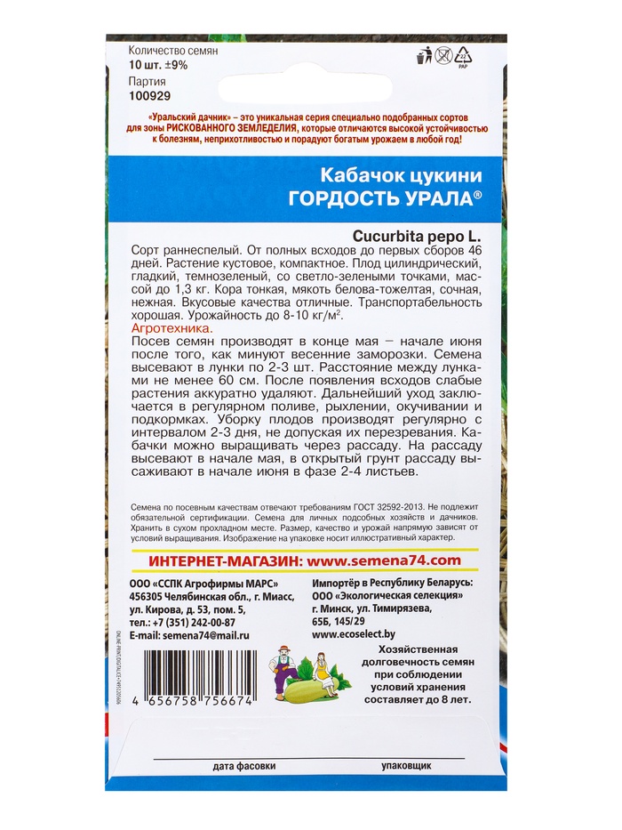 Семена Кабачок Гордость Урала - цукини (УД) Е/П , Е/П, 10 шт.
