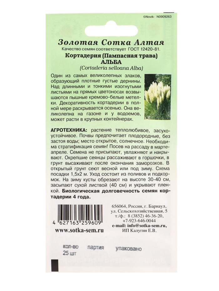 Семена Кортадерия Альба /Сотка/ 25шт/ h-1,8-2м/*500