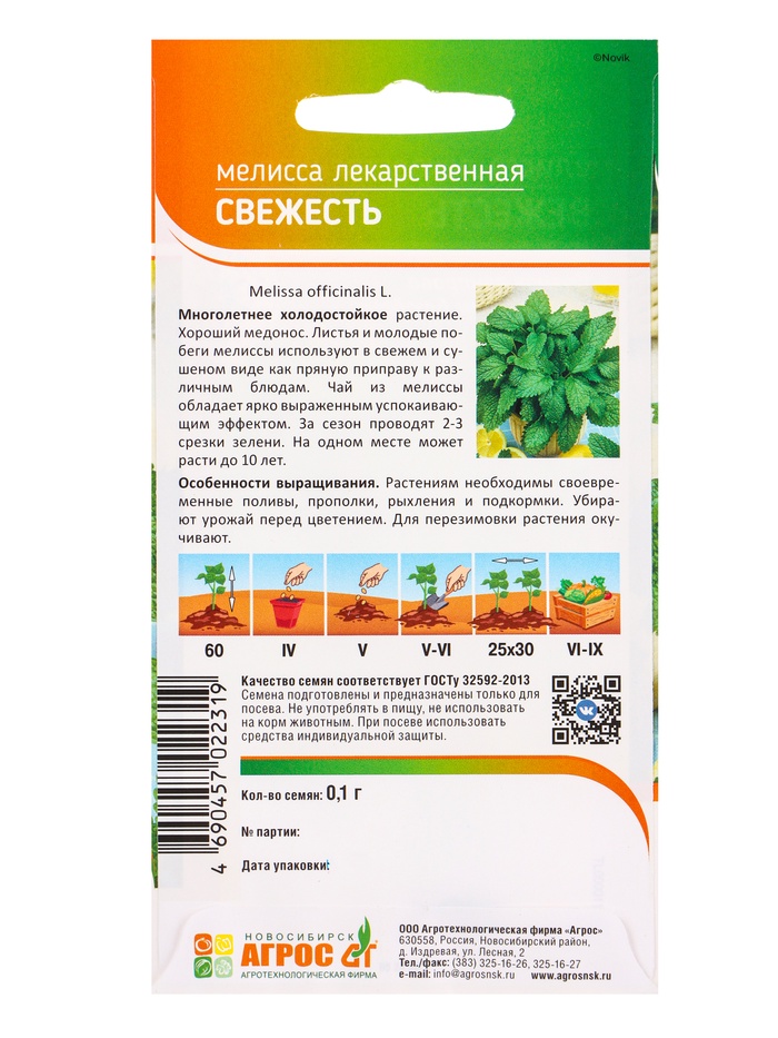 Семена Мелисса «Свежесть» 0.1 г, «Агросс»