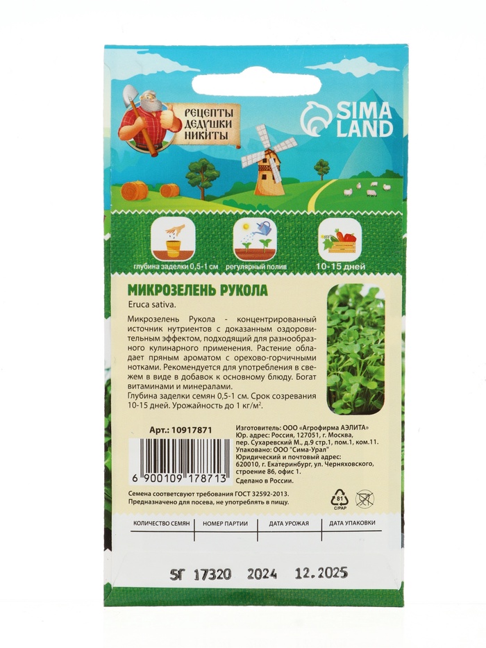 Технические характеристики Семена Микрозелень Руккола, 5 г