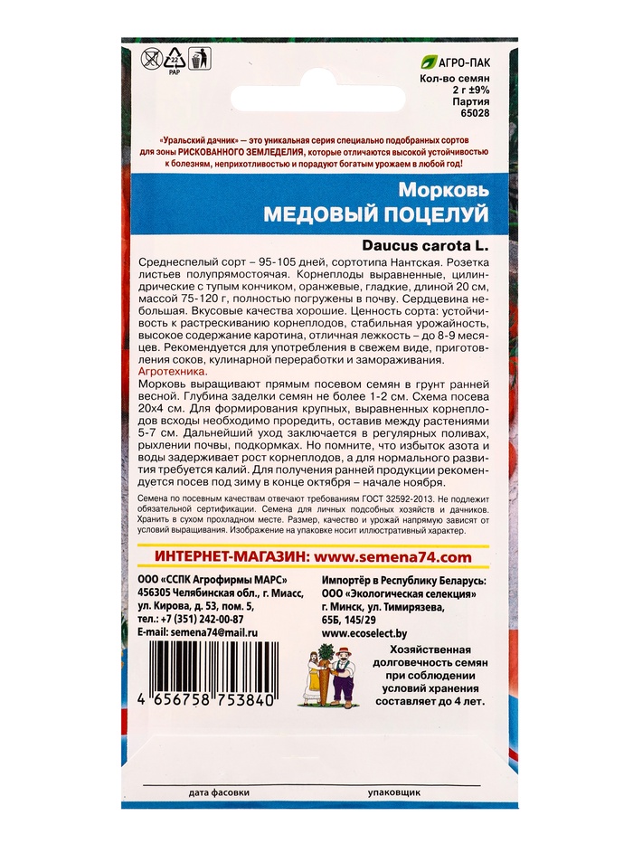 Семена Морковь Медовый поцелуй (УД) Е/П , Е/П, 2 г.