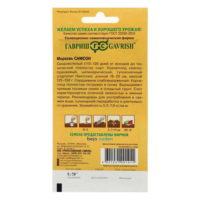 Технические характеристики Семена Морковь Самсон, 0,5 г продажа, цена в Минске