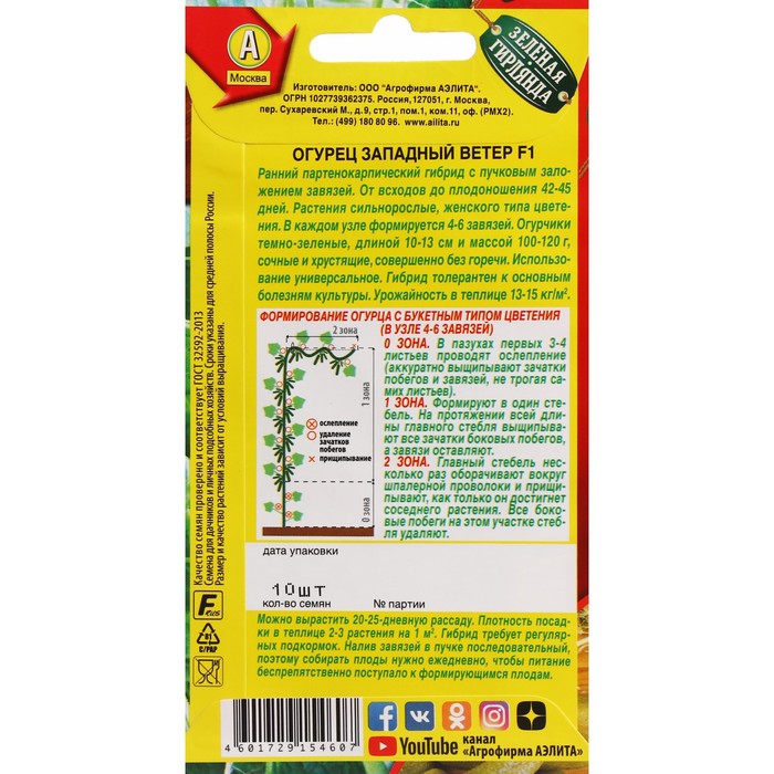 Семена огурца "Западный ветер", F1, 10 шт.