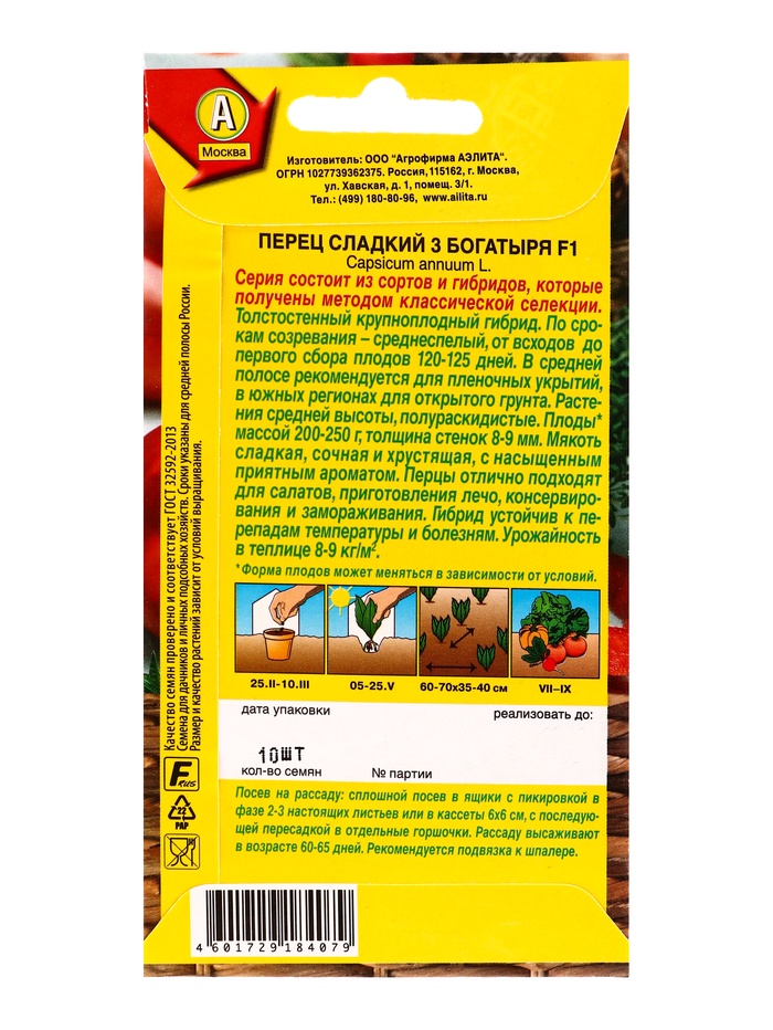 Технические характеристики Семена Перец сладкий 3 богатыря F1 Профи-Аэлита, Ц/П,10 шт.