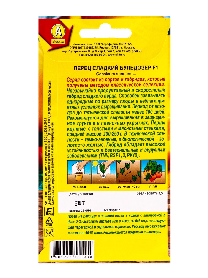 Технические характеристики Семена Перец сладкий Бульдозер F1 Профи-Аэлита, Ц/П,5 шт.