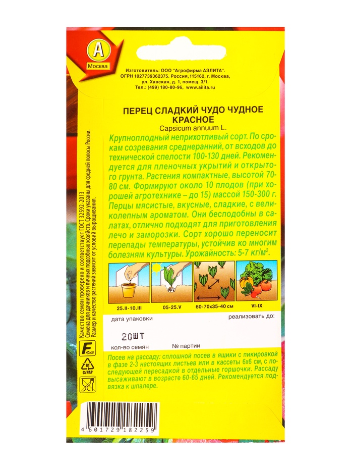 Семена Перец сладкий Чудо чудное красное, Ц/П,20 шт.