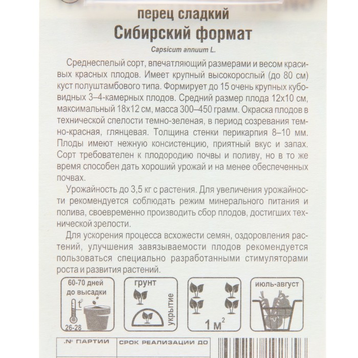 Семена Перец сладкий "Сибирский формат", 15 шт
