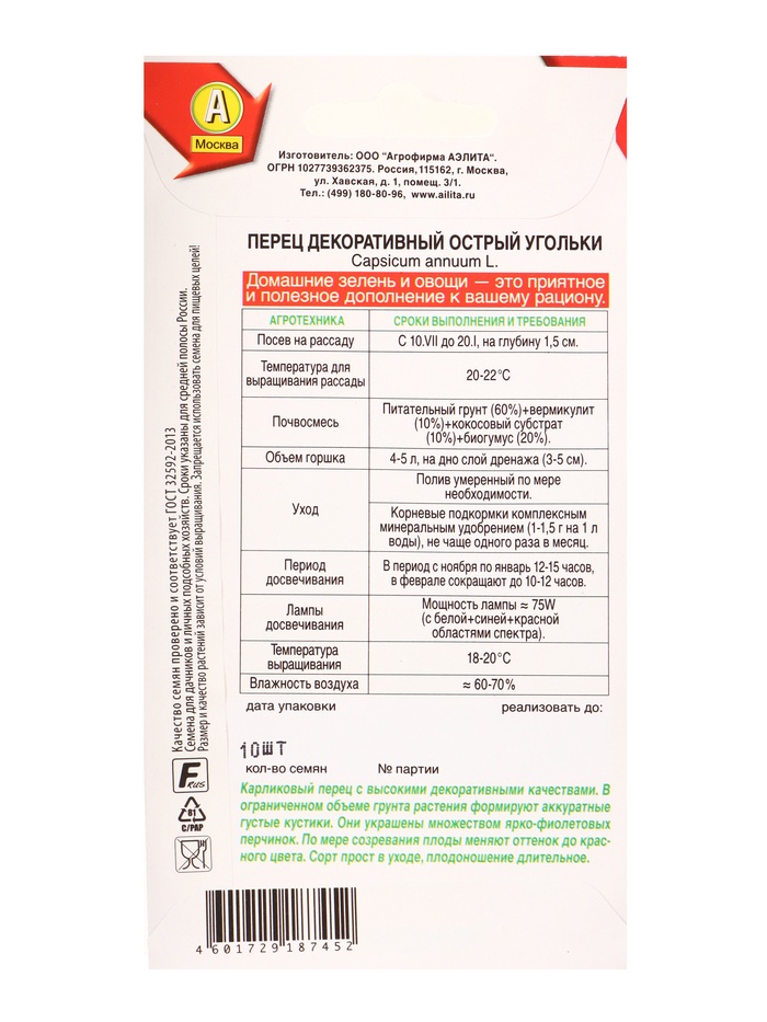 Семена Перец декоративный острый Угольки Зимний огород, Ц/П,10 шт.