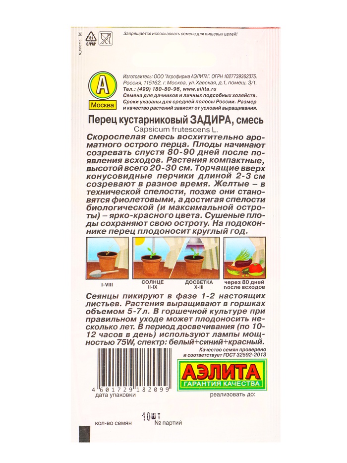 Семена Перец кустарниковый Задира, смесь Урожай дома, Ц/П,10 шт.