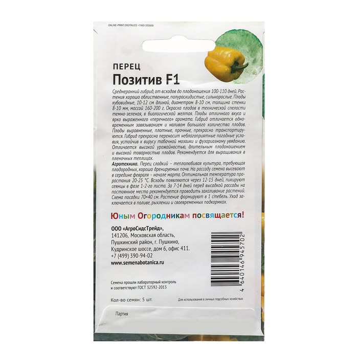Семена Перец "ПОЗИТИВ", "Детская грядка",5 шт