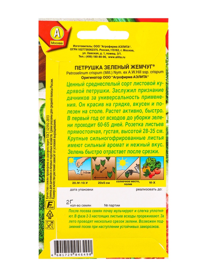 Семена Петрушка кудрявая Зеленый жемчуг , Ц/П,2 г