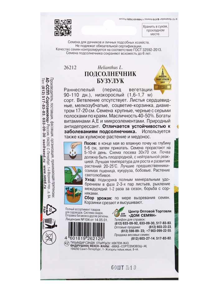 Семена Подсолнечник Бузулук 60 шт