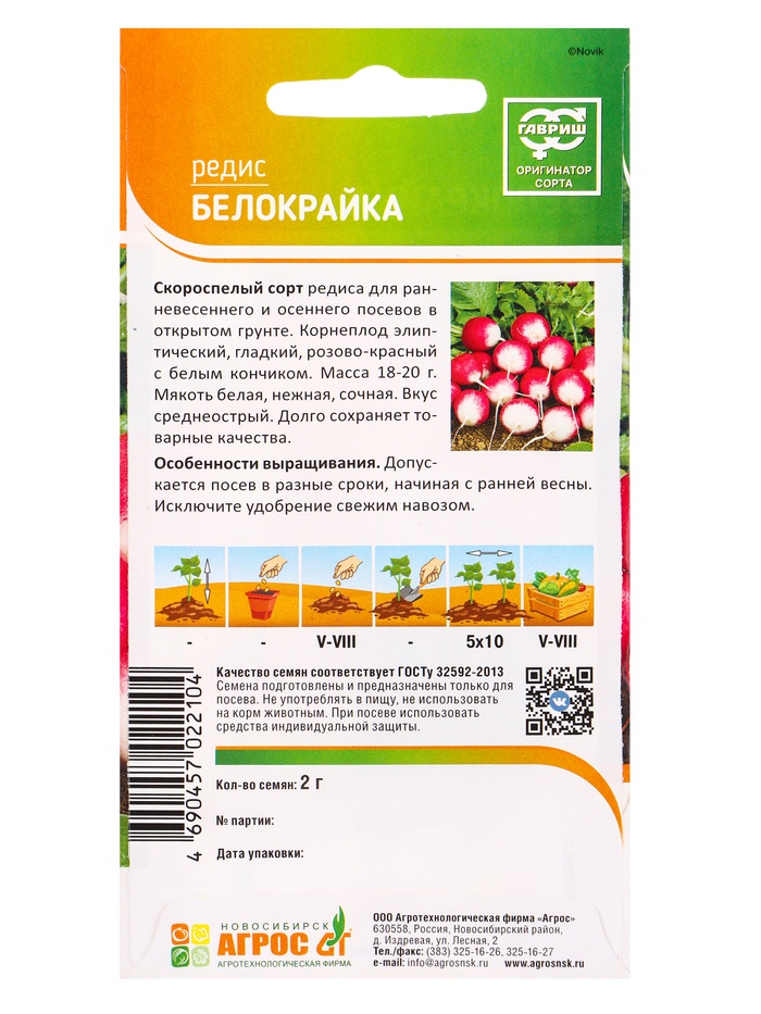 Семена Редис "Белокрайка" 2 г