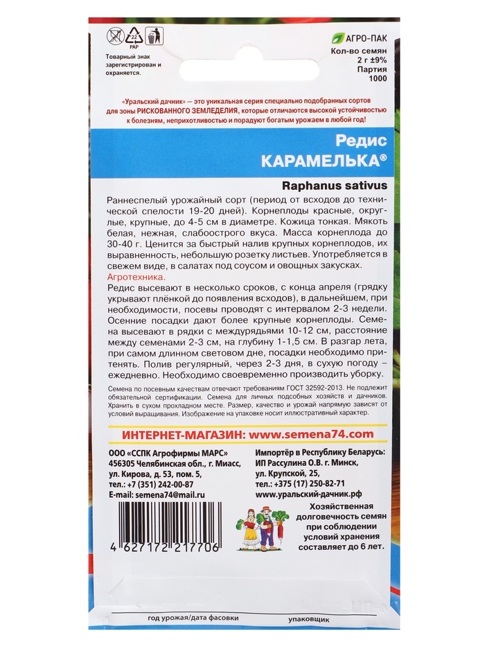 Семена Редис Карамелька (УД) Е/П , Е/П, 2 г.