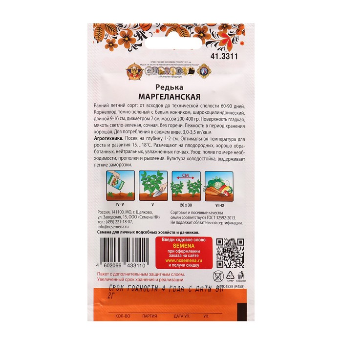 Технические характеристики Семена Редька Маргеланская 2 г