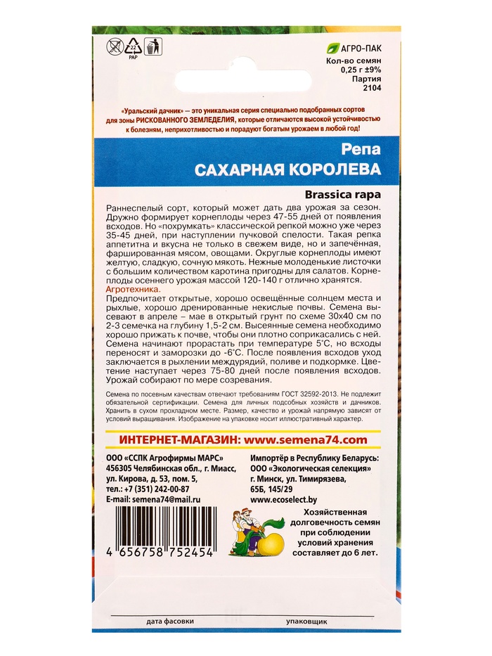 Семена Репа Сахарная королева (УД) Е/П , Е/П, 0,25 г.