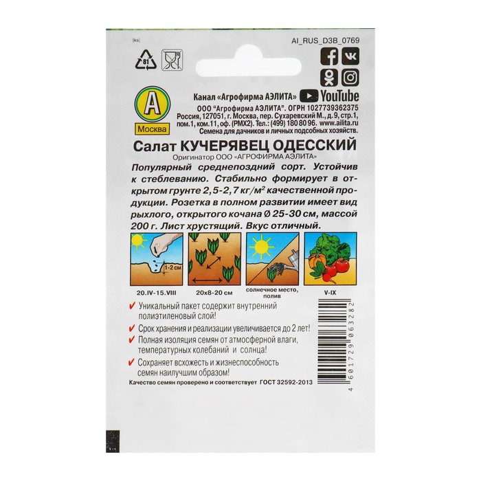 «Кучерявец Одесский» — это полукочанный среднеспелый сорт салата, у которого период от всходов до сбора урожая составляет 60–75 дней. Он холодостойкий, устойчив к цветушности.