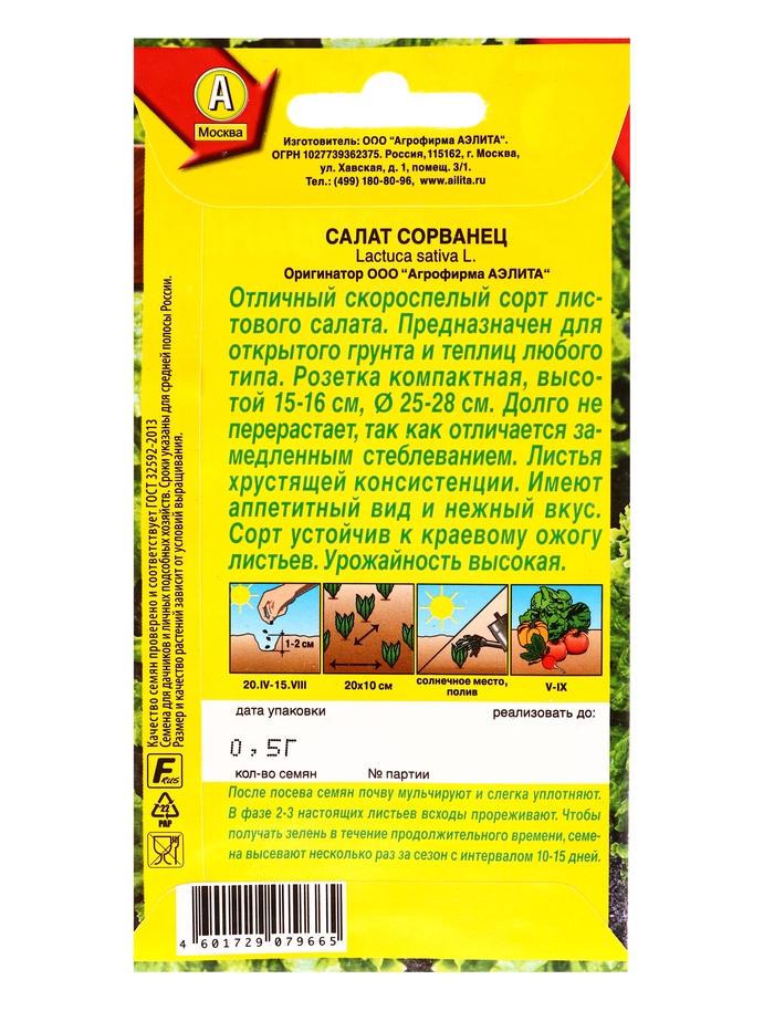 Семена Салат «Сорванец», листовой, 0.5 г, «Агрофирма АЭЛИТА»
