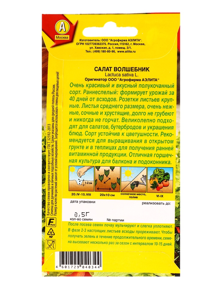 Семена Салат «Волшебник», полукочанный 0.5 г, «Агрофирма АЭЛИТА»