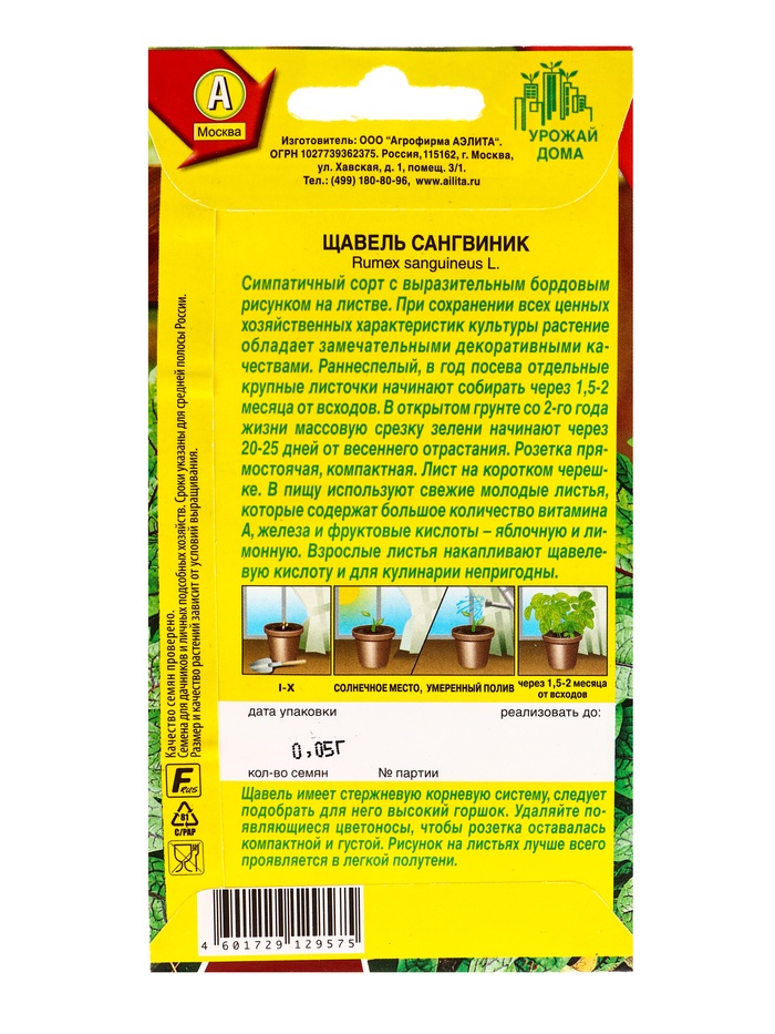 Семена Щавель Сангвиник Урожай дома, Ц/П,0,05 г