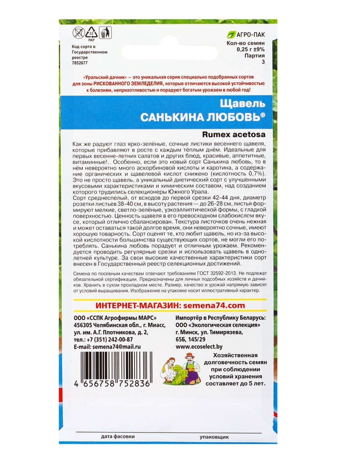 Семена Щавель Санькина любовь (УД) Е/П , Е/П, 0,25 г.