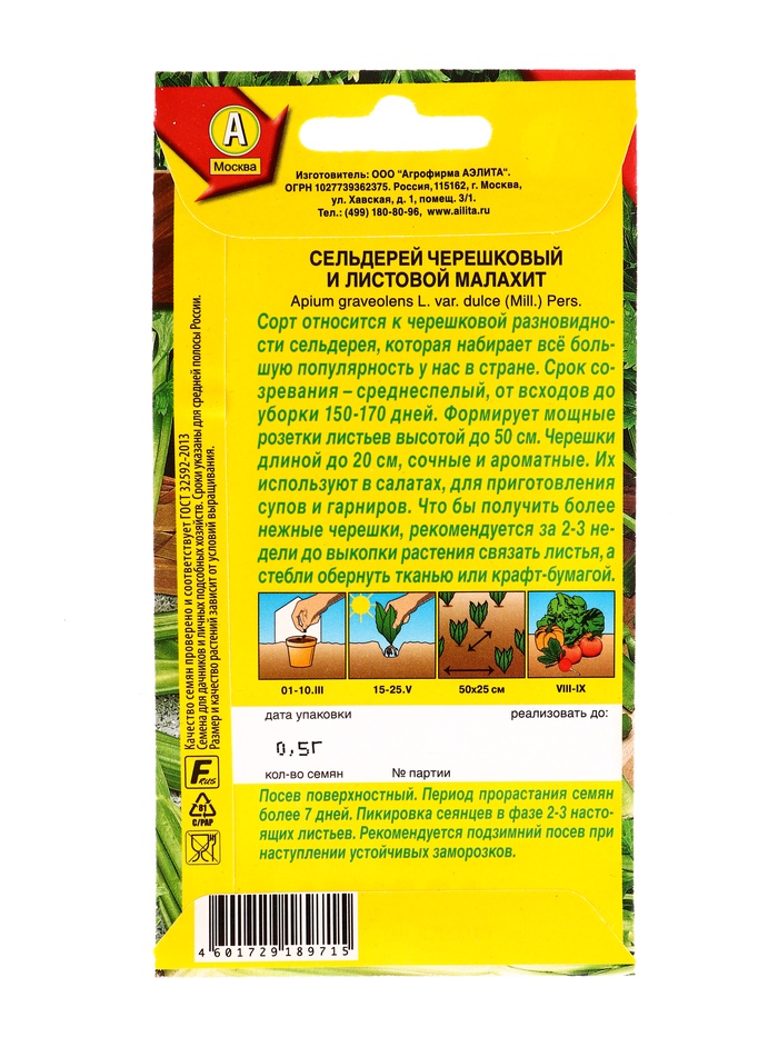 Семена Сельдерей черешковый «Малахит», «Агрофирма АЭЛИТА», 0.5 г
