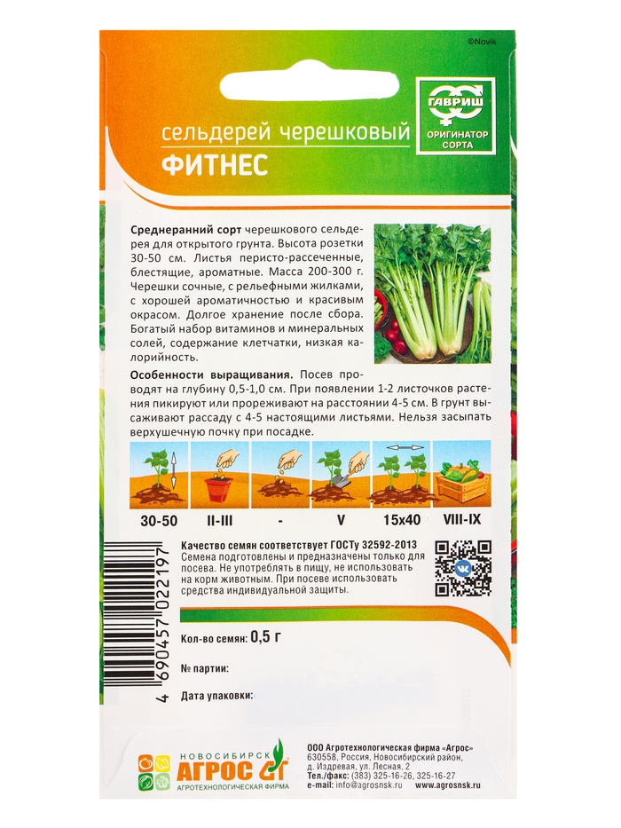 Технические характеристики Семена Сельдерей "Фитнес" 0,5 г