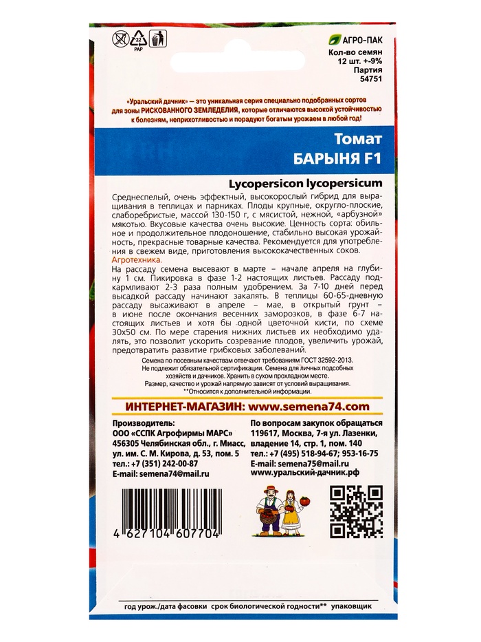 Семена Томат Барыня F1 (УД) Е/П , Е/П, 12 шт.