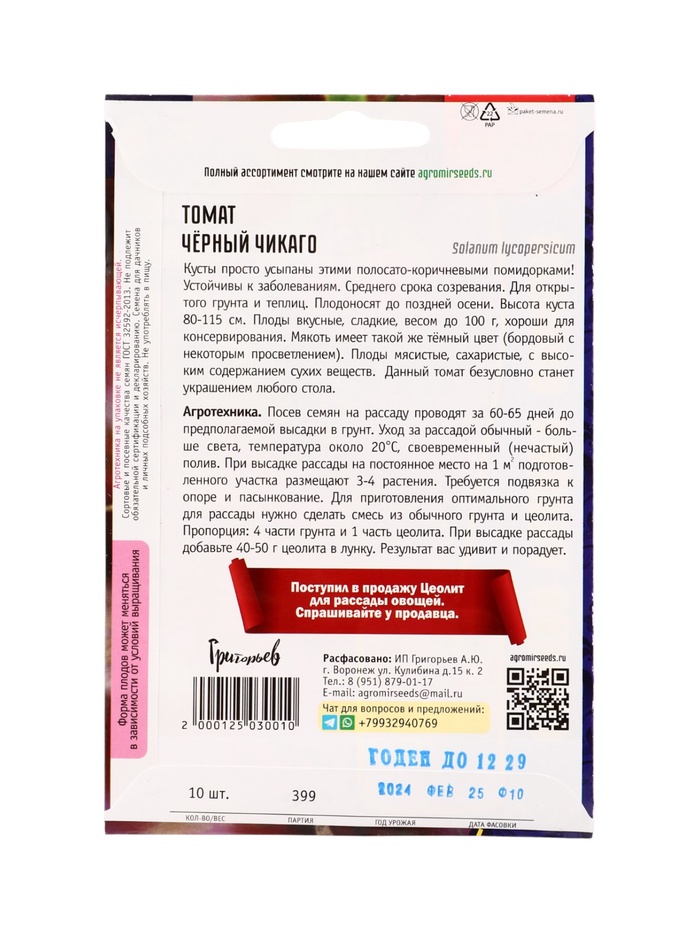 Семена Томат Чёрный Чикаго 10 шт. 12.29 г.