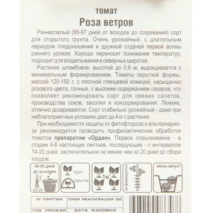 Технические характеристики Семена Томат «Роза ветров», 5 шт., «Сибирский сад»