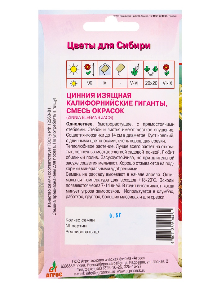 Семена Цинния Изящная "Калифорнийские гиганты" 0,5 г