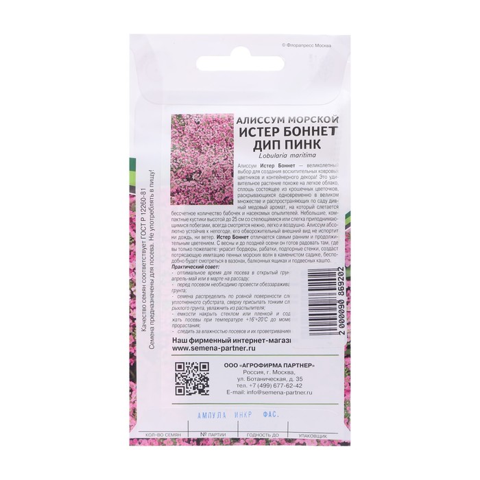 Семена цветов Алиссум морской "Истер Боннет Дип Пинк", 0,01 г