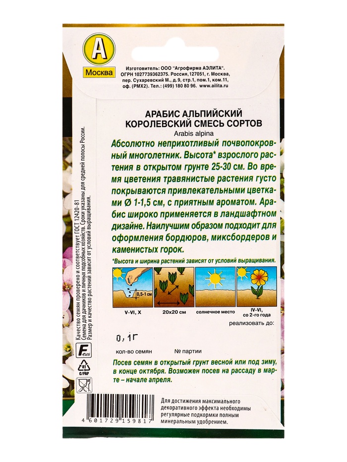 Семена цветов Арабис «Королевский», смесь сортов, многолетник, «Агрофирма АЭЛИТА», 0.1 г