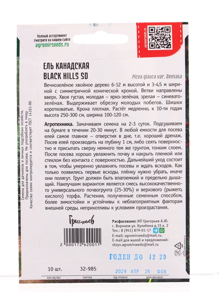 Семена цветов Ель Black Hills SD канадская 10шт. 12.29 г.