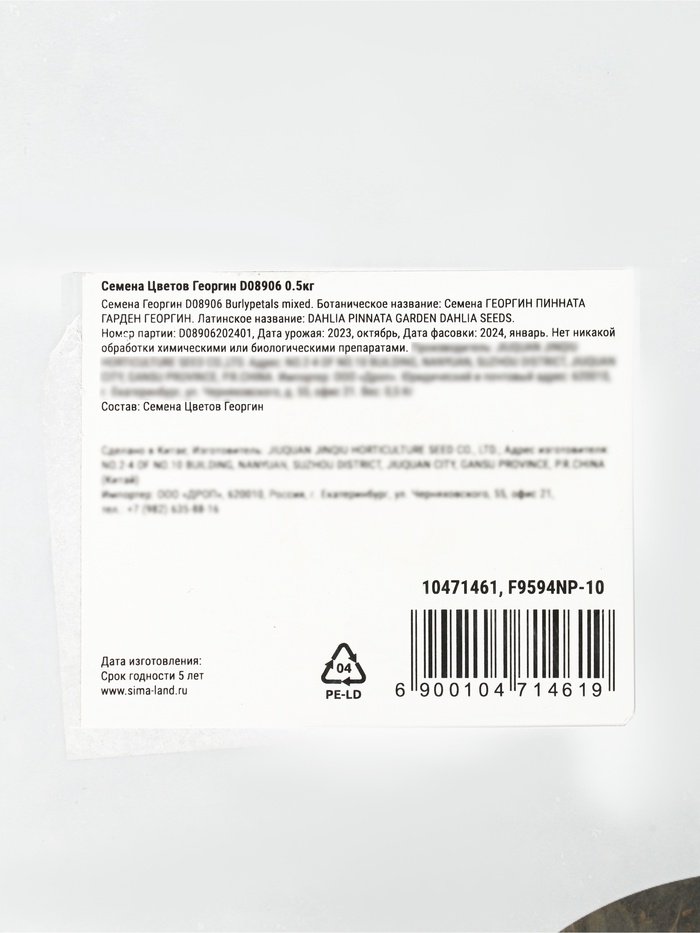 Технические характеристики Семена цветов Георгина «Пинната Гарден» перистая, высокая, Микс 0.5 кг